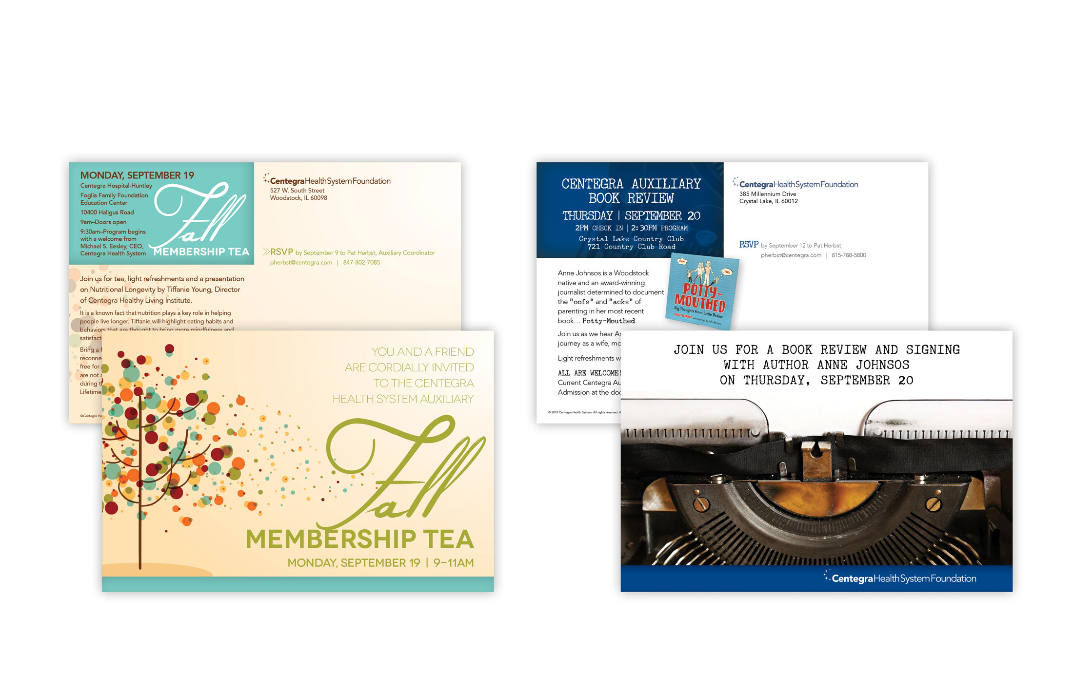 Three separate trigger direct mailers sent to lapsed patients, patients turning 40 and patients over 40 who have not had a mammogram at Centegra. Layout/design and image selection were included in the scope of my work on the mailers.