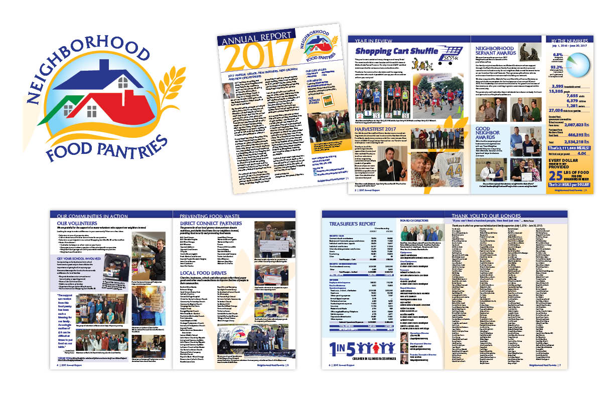 Since 1999, Neighborhood Food Pantries has provided food security to their neighbors in need, as well as monetary assistance for housing, utilities, medical care/prescriptions, etc. Their mission is to effectively distribute food and emergency assistance in Northwest DuPage County through community and faith partnerships, collaborations, volunteer efforts, and ongoing fundraising. In addition to the design of the logo, I’ve done the layout/design of the NFP annual report for the last several years. Find out how you can help.
